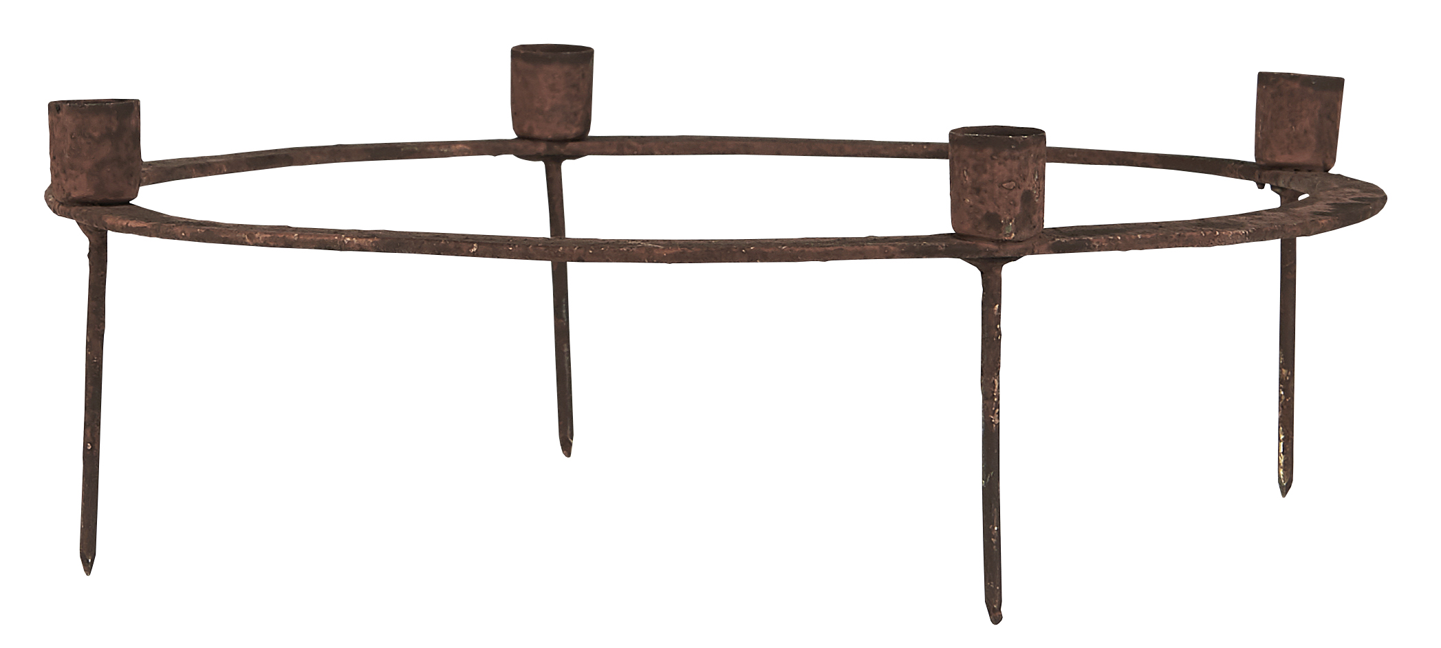 Kerzenhalter für 4 Kerzen. Höhe ca 7,2 cm, Durchmesser ca. 21,7 cm. Material: Metall rostfarben